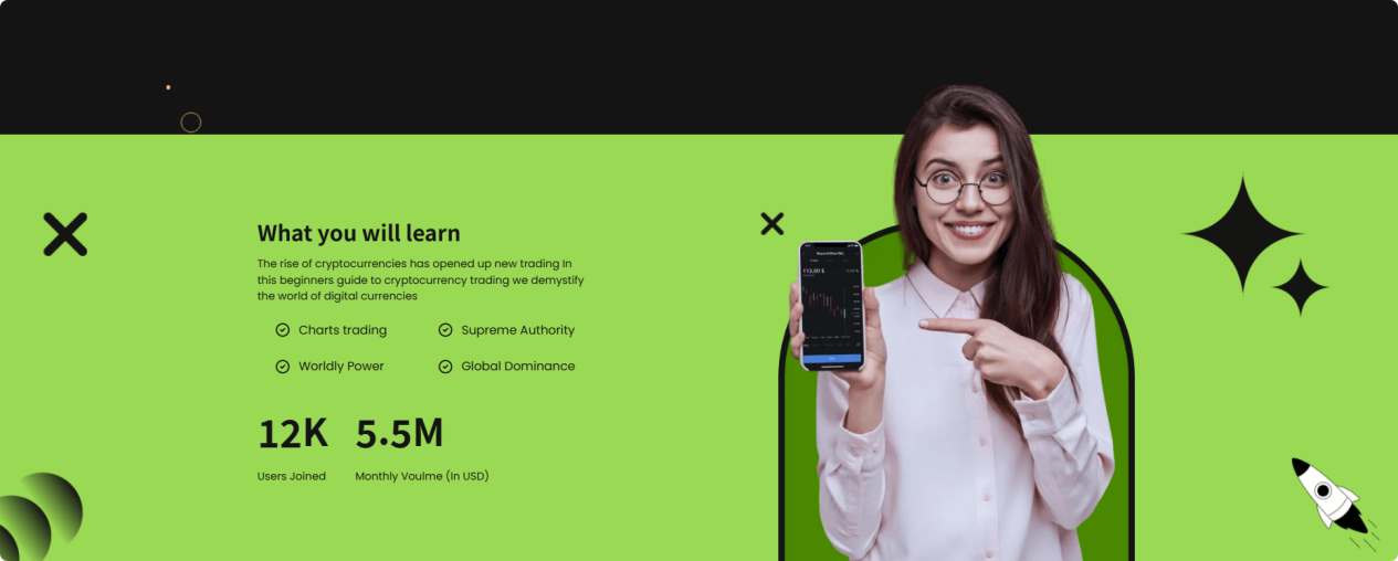 「身為職場人沒精力研究市場,20美元試水短線波段跟單,跟著高手捕捉加密貨幣的短期行情,低點差+快進快出策略,半年就實現了月均穩定收益,低門檻+高靠譜度,完全超出預期!」——營銷總監Esther Howard
